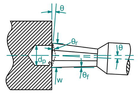 شکل زیر تمامی زوایای روتاری بروچ را نشان می‌دهد. همان‌گونه که از شکل مشخص است، علاوه بر زاویه‌ی ɵ که همان زاویه‌ی یک درجه‌ی هولدر می‌باشد، زاویه‌ی ɵf که زاویه‌ی آزاد ابزار است نیز باید لحاظ شود.