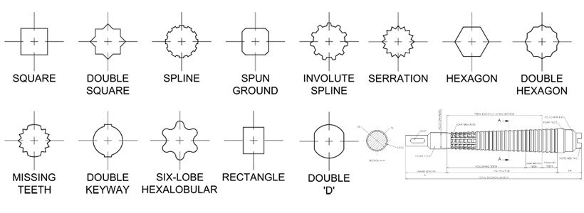 این اشکال می‌توانند در متریال‌هایی مانند آلومینیوم، برنج، فولاد، پلاستیک، تیتانیوم و فولاد ضد زنگ مورد استفاده قرار گیرند. دو شکل شش‌ضلعی و مربعی رایج‌ترین اشکال مورد استفاده در روتاری بروچ می‌باشند.